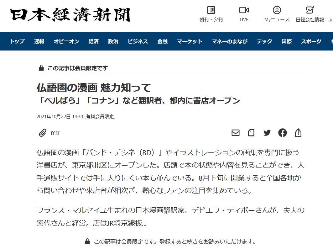 2021年10月22日の日経新聞夕刊にお店の記事が掲載されました!