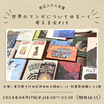 翻訳家の原正人さん主催で「世界のマンガマンガについてゆるーく考える会」が秋葉原で行われます。